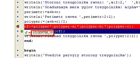 writeln('Ploshad treygolnika ravna ',polyper:2:2);