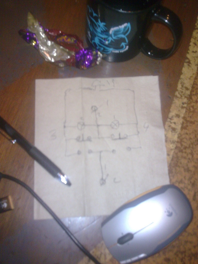 Хочу отметить, что в условии не оговорено ни одного из следующих условий: ... а также стандарты на изоляцию проводов, типы ламп и девичья фамилия бабушек жильцов.. 1. Возможности функционирования схемы при нажатии нескольких кнопок одновременно. 2. Сотношения между напряжением в сети и номинальными напряжениями лампочек и звонка. Хорошо, я оговорю. 1. Одновременное нажатие кнопок запрещено и грозит выплатой полной стоимости оборудования (даже в случае его сохранности), плюс штраф в размере 2.71828 минимальных зарплат. 2. Номинальное значение напряжения ламп и звонка в точности равно напряжению в сети. И добавлю от себя (по просьбе электрика Васи) еще один пункт: 3.14. ПАЛЬЦЫ В РИЗЕТКИ НЕСУВАТЬ!!!!! Предлагаю схему: Ты лучше нарисуй, хотя мне уже не нравятся слово "последовательно" и подозреваемая мной множественность звонков..Три цепочки из лампочки и последовательно соединенного с ней звонка включены в параллель. Вся эта конструкция последовательно соединена со звонком. При этом, естественно, номинальные токи лампочки и звонка должны быть равны, а напряжение в сети - сумме их номинальных напряжений. Режим одновременного нажатия на кнопки схема не предусматривает так же, как и оба варианта, опубликованные ранее. Достоинства схемы: Схема xds делает это с блеском.1. Легкость обобщения на произвольное количество лампочек и кнопок. 2. В конструкции допустимо использование "стандартных" кнопок, т.е. имеющих лишь одну пару контактов на замыкание (без размыкающих контактов). ... ибо контакты на размыкание безумно дороги в производстве, что особенно существенно при гигантских масштабах нашего Проекта.. Схема не лишена недостатков, в частности, перегрузка звонка в нештатном режиме работы (при замыкании нескольких кнопок одновременно). Но мне это кажется меньшим недостатком, чем то, что опережение замыкания перед размыканием (в штатном режиме) ведет к КЗ. Если таковые (двойные) кнопки выпускаются производством, они должны быть сертифицированы и гарантированы от подобных нештатных ситуаций.Ладно, хватит шутить - andriano, ты правда не видишь, что задача имеет чисто академический характер? Решение привел xds, решение правильное и т.д. и т.п.. Но! Но мне очень жаль, что никто из ответивших не понял меня.. Задача провисела тут несколько дней, и ни у кого не появилось мысли ее решить. Стоило же мне сказать, что задача в этом разделе может нести в себе другой смысл - как тут же появились желающие пофлудить физикой в паскалевском разделе.. Моя программа - не Бог весть какое чудо, но она все же вносит некоторое разнообразие в бесконечные "расставить сторки по.." Она решает только эту конкретную задачу, причем за непозволительно большое время, но все же дает некоторое понятие о неких других задачах, которые могут решаться программным способом. Я надеялся на дискуссию именно по программированию, а не по физике (когда я начал решать ее программно, я как бы заблокировал себе мысли об обычном решении). Что ж, не вышло.. Наверное, надо действительно перенести тему в Физику, а свой пост опубликовать отдельно в FAQ - хотя, я не назвал бы этот вопрос часто задаваемым.. я подумаю. Чего и вам желаю.. Take it easy! -------------------- я - ветер, я северный холодный ветер
