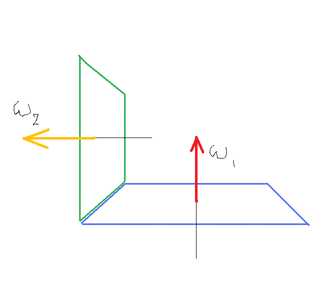 Итак, два тела вращаются вокруг взаимно перпендикулярных осей. Найти угловое ускорение второго тела в системе первого.