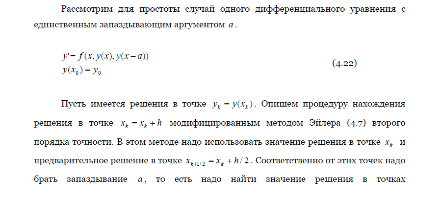 отдельно есть решение методом Эйлера для обычного диф. ур.(Это уже реализовано), но нет для решения с запаздывающим аргументом!