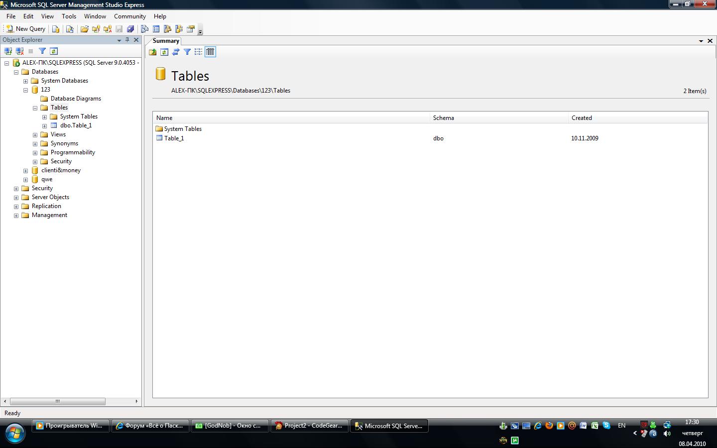 хотя sql-сервер (SQL Server 2008) нормально установился и в приложения C# к нему можно подключиться без проблем.