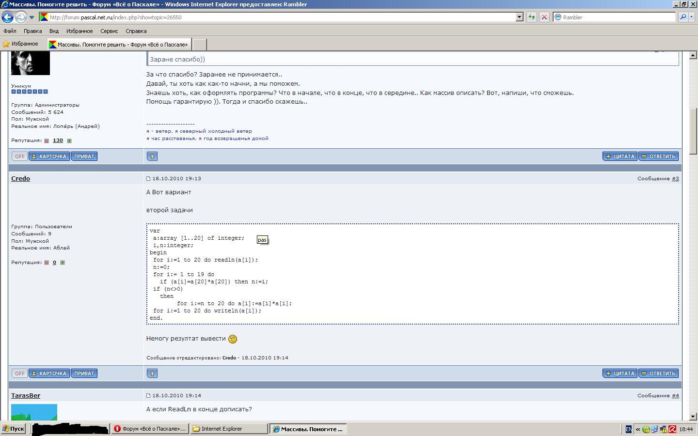Такая проблема: после переустановки браузера на IE 8 не вижу подсветку содержимого в тэге [code=pas][/code] (подсвечивалось зеленым, синим), перестали работать кнопки "Спойлер" и "+" "-" (в повышении репутации). Может быть какие-то еще кнопки не работают, пока не заметил. Нажимаю - ничего не происходит. С чем это может быть связано? Что изменить?