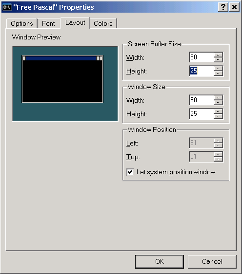 Щёлкни правой на Title Bar (где написано Free Pascal IDE), и выбери Свойства (Properties)!