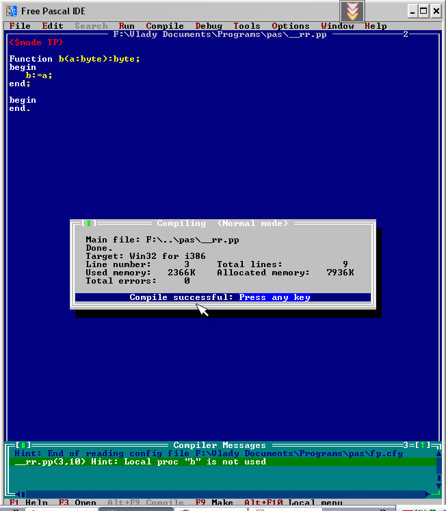 Цитата У меня и {$MODE GPC} и {$MODE DELPHI} и {$MODE ObjFPC} компилируют твой первый вариант... Что такое GPC? В ObjFPC не могу поставить, так как у меня идет работа с объектами. -------------------- Лао-Цзы :