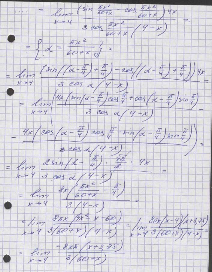 Кстати, там вроде надо вынести в числителе и в знаменателе скобочки типа (x-4 стремится к 0) и сократить их, тогда неопределённость типа (0 поделить на 0) исчезнет и можно будет вычислить значение предела. Хм.