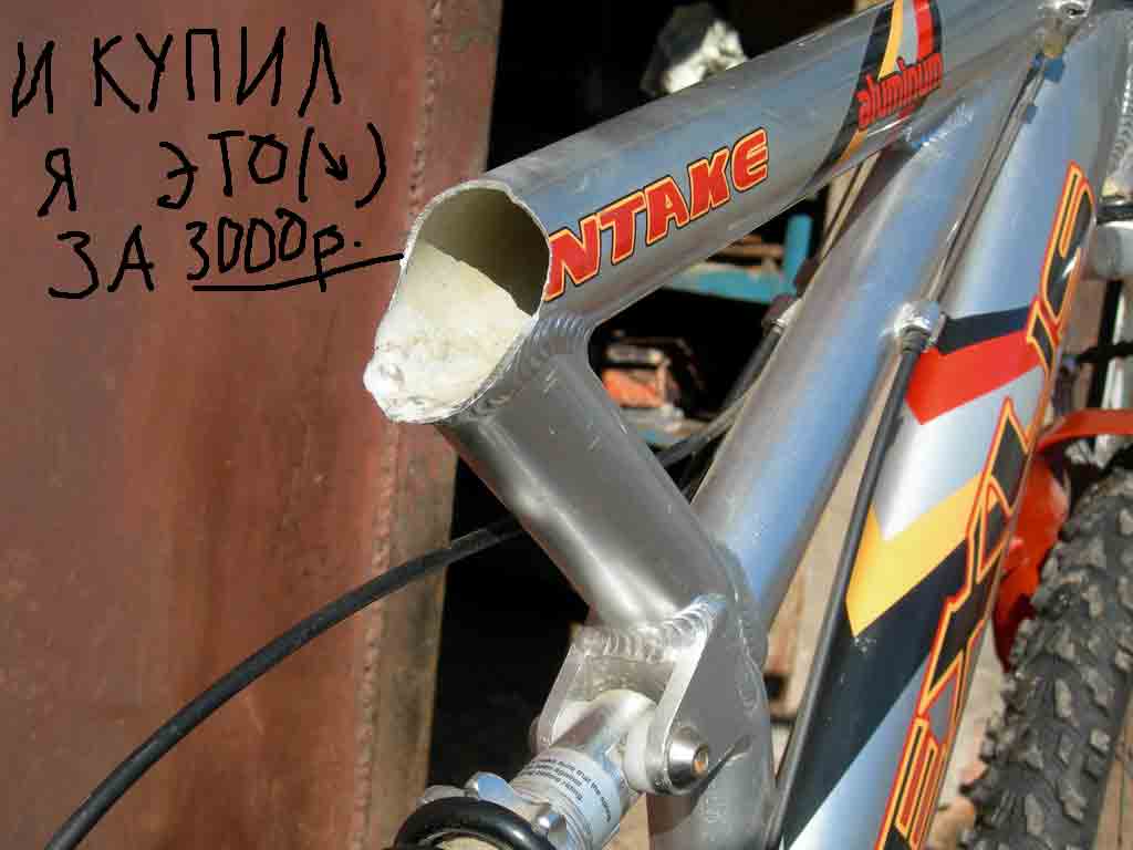 А как ты посадил трубку? на клей?.. тогда какой? Трубка на 34мм, а внутренний диаметр рамы - 35, мне пришлось её поколотить кувалдой, и тогда с натягом вошла. Но ешё для того, чтобы трубка не вытащилась обратно, я просверлил дырки, и закрепил болтиком обе моломанные части, предварительно нарезав резьбу в прослевленных дырках. ВотЪ! сварить алюминиевые края поверх той трубки я хочу заварить алюминевые края трубки, но не прожечь внутреннюю трубку. Я где-то слышал про холодную сварку... просветлите... И еще вопрос: сколько весит трубка? Ну не знаю, сам считай, не буду я же разбирать, чтоб узнать, скока она весит. Уже выше писал, что d=34мм, толщина=2-2,5мм, длина=30-35см. плотность железа не помню... И последнее: что это за пружинки? пружинки, пружинки, такие вечеринки, зелёные тропинки, где тихо и светло... |
