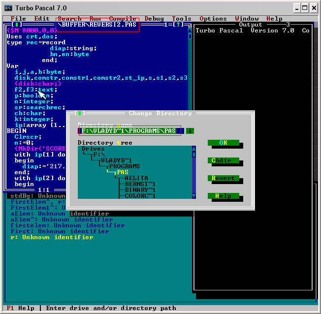 Вот, смотри: Видишь? Текущая папка не совпадает с той, где лежит исходник, и если у меня будет прилинковываться OBJ-файл лежащий там же, где и REVERSI2.PAS, но я укажу неполное имя OBJ-файла, то сам PAS-файл компилироваться будет, а вот OBJ-фал не будет найден, потому что он лежит не в текущей папке, а просто рядом с исходником... Чувствуешь разницу? Сообщение отредактировано: volvo - |