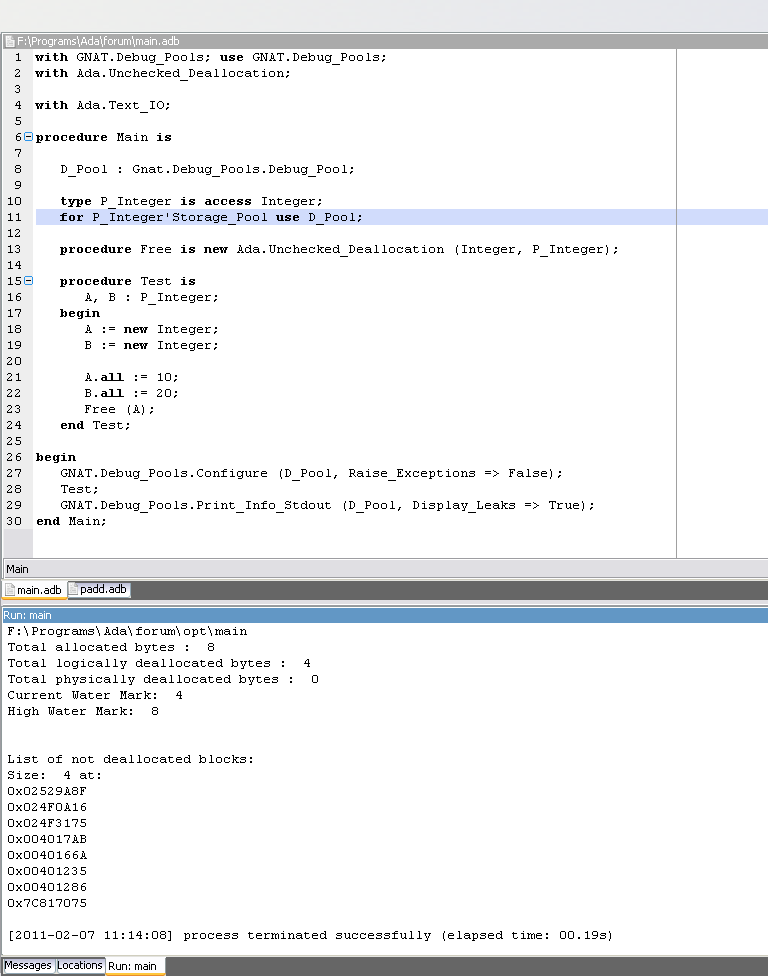 #if Test_Leaks и #end if; не выполнялся? Я убрал & ("-gnateDTest_Leaks=True") , не помогло. Закрыл среду, удалил exe, открыл среду, всё равно не помогло. -------------------- |