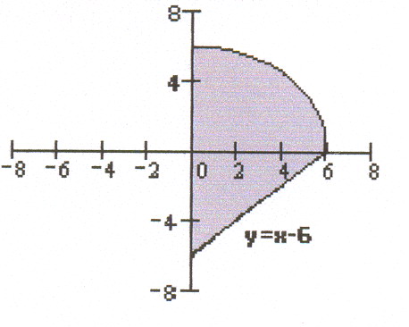 f1:=(x>=0) and (y>=0) and (x*x + y*y <=36);