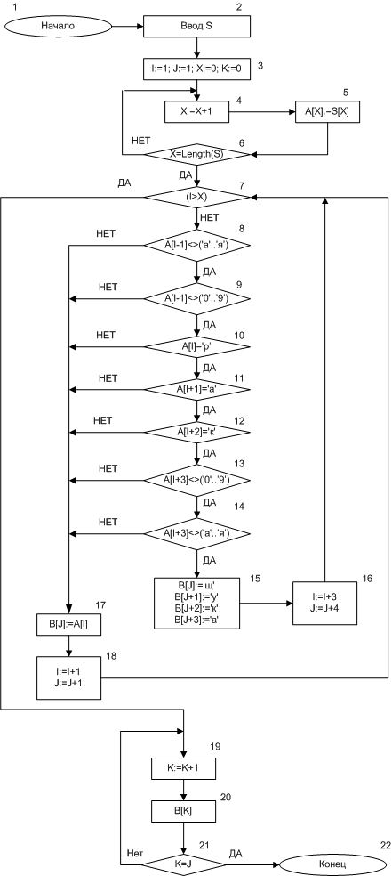 10, 11, 17 - ветвление;