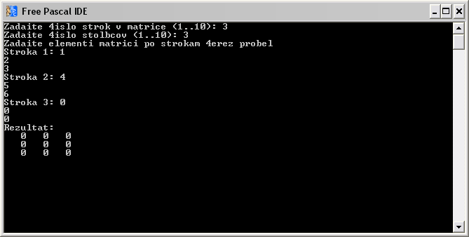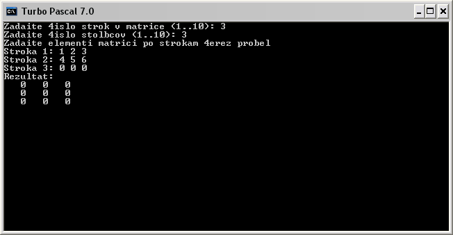 WriteLn('Zadaite elementi matrici po strokam 4erez probel ');