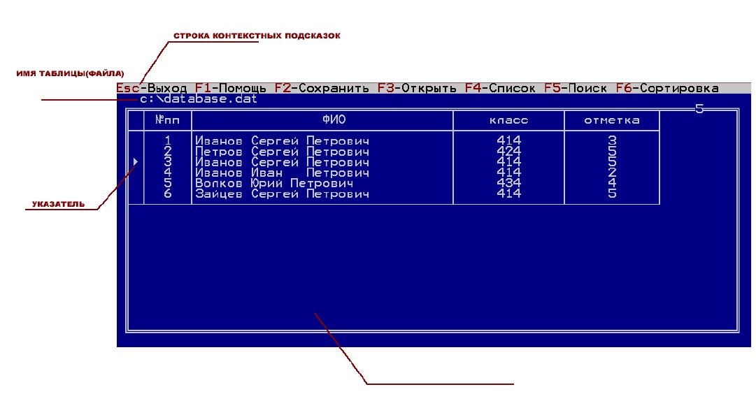 Составить программу, которая позволяет создавать, открывать, редактировать и сохранять в файлы таблицы заданного вариантом формата. Для работы с записями таблицы(строка данных об одном объекте) использовать тип RECORD. Для каждой отдельной таблицы количество записей в ней должно динамически изменяться. Иными словами для организации таблицы следует использовать динамические структуры данных (рекомендуется двунаправленный список-«дек»). Максимальное количество таблиц, которое можно открыть, задается вариантом. Для хранения таблиц рекомендуется использовать массив записей характеризирующих таблицу. Программа должна обладать дружественным интерфейсом. Необходимо наличие строки контекстных подсказок с описанием основных комбинаций клавиш, используемых для управления. Каждая таблица должна открываться в новом окне. Необходимо предусмотреть возможность переключения между окнами. Окна реализовать в текстовом режиме. Все служебные диалоги реализовать также в текстовых окнах. При работе с таблицами предусмотреть возможность добавления, редактирования, удаления, сортировки и поиска записей. Максимальное кол-во таблиц 19 Названия, имена и типы полей записи в таблице Название Имя Тип №пп Num Byte Название Name String Семестр Term Byte Кол-во часов Course Word Поиск по полю Название Сортировка по полю Семестр Выглядеть все это должно приблезительно так как на прикрепленном рисунке Спасибо зарание. Эскизы прикрепленных изображений |