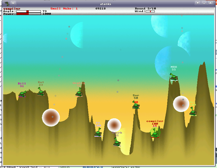 Решил вот написать игру по типу atomic tanks(я в неё ещё под ДОСом играл, а тут нашел под линух и убил много времени)).