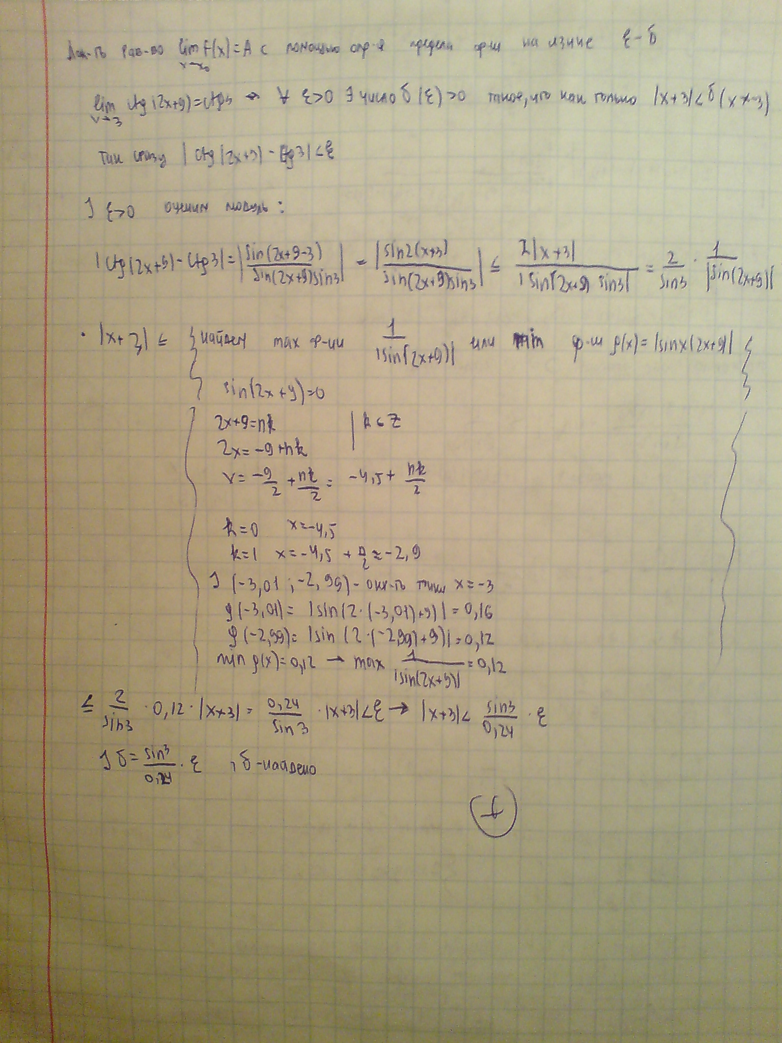 а мне нужно решить для примера-- lim ctg(2x+9)=ctg3 при x-->-3