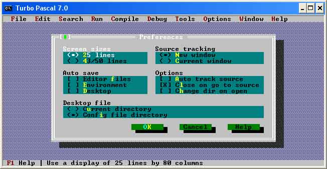 2. я задаю размер окна: options -> environment -> preferences -> 34/50 lines.