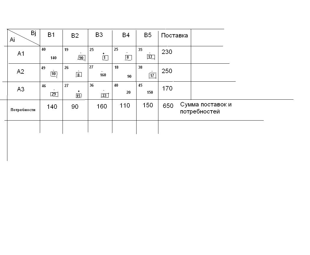 Пять пунктов потребления груза(тонн)- В1=140, В2=90, В3=160, В4=110, В5=150.
