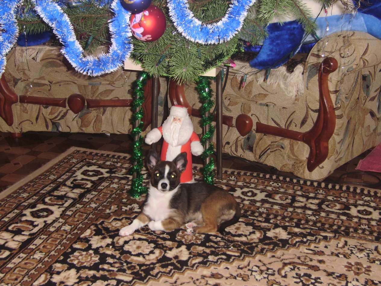 На последней фотке она уже взрослая, стережет Деда Мороза))