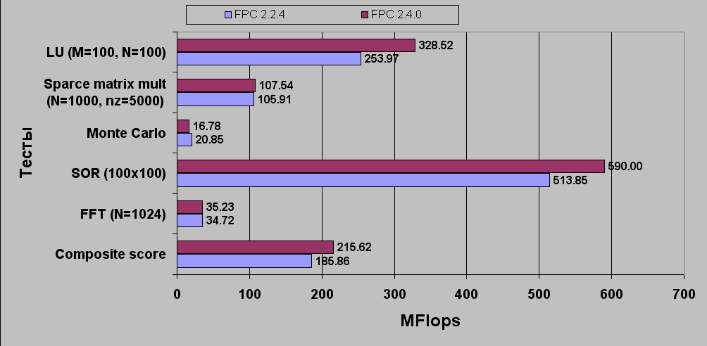 Чуть позже будут выложены результаты тестирования компиляторов FPC второй ветки (2.0.0, 2.0.4, 2.2.0, 2.2.2, 2.4.0) на скорость: