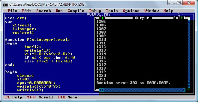 У тебя явная проблема с рекурсией. Твоя программа не будет считать правильно даже при гигабайтном стеке и с прекрасным приведением типов. В ней есть одна очень серьезная ошибка. Давай ты сначала отладишь прогу на FPC или Delphi, а потом уже будешь решать проблемы со стеком на ТР. Хорошо?