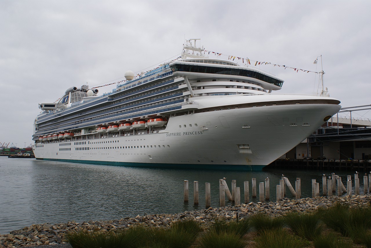 Sapphire Princess демонстрирует себя во всей красе в порту ЛА, Long Beach. Ну, не красавица, а??.. Я насчитал 11 дек.. или 12.. считайте сами )).