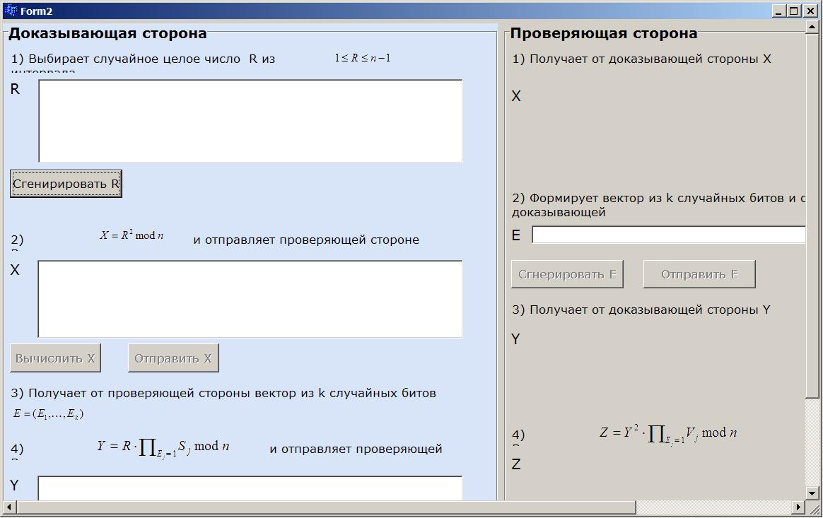 Здравствуйте! Очень нужна помощь в написании небольшой программы с большими числами. smile.gif Необходимо реализовать протокол аутентификации Фейге-Фиата-Шамира, используя длинные ключи. Нашла в инете реализацию цифровой подписи на основе данного протокола с использованием библиотеки ‘lip.h’ (работа с длинными числами, модулярная арифметика), обрадовалась, увидя процедуру генерации ключей, но, начав разбираться в коде поняла, что для цифровой подписи протокол несколько иной…