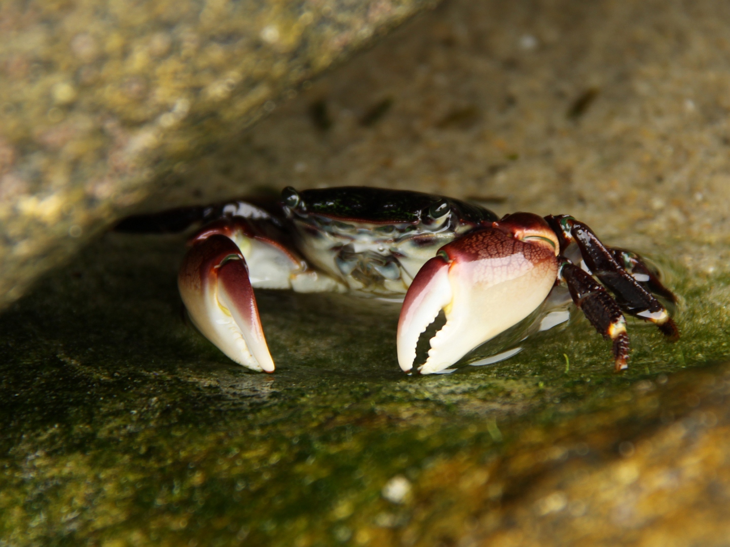 Ну, тогда держи smile.gif Прикрепленное изображение. Нельзя назвать очень удачным, но удачнее моих предыдущих крабов. Их сниамать нетрудно, но нужно иметь терпение. Главное - просидеть, не двигаясь, минут 10-20-30.. Труднее всего - не расхохотаться, потому что они очень забавно орудуют клещнями. Методично отдирают что-то с камня клещнями и кладут в рот: левой-правой, левой-правой.. Совсем как люди )).