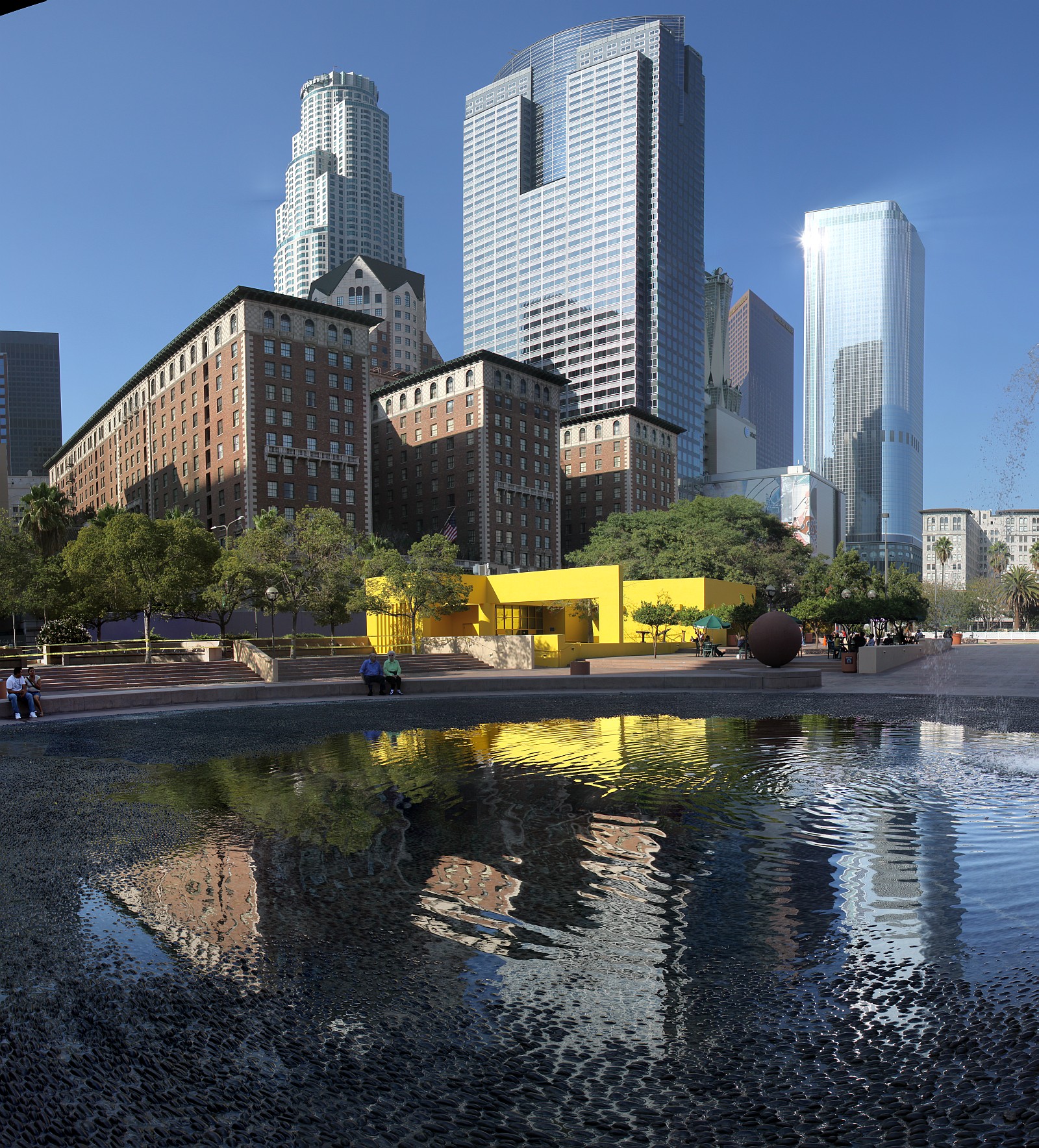 Снятое требует некоторого осмысления и обработки. Сейчас кладу только одно фото. Это Першинг-сквер (Pershing Square) - место, где в ЛА проходят всякие события. Сейчас, правда, тихо и спокойно..