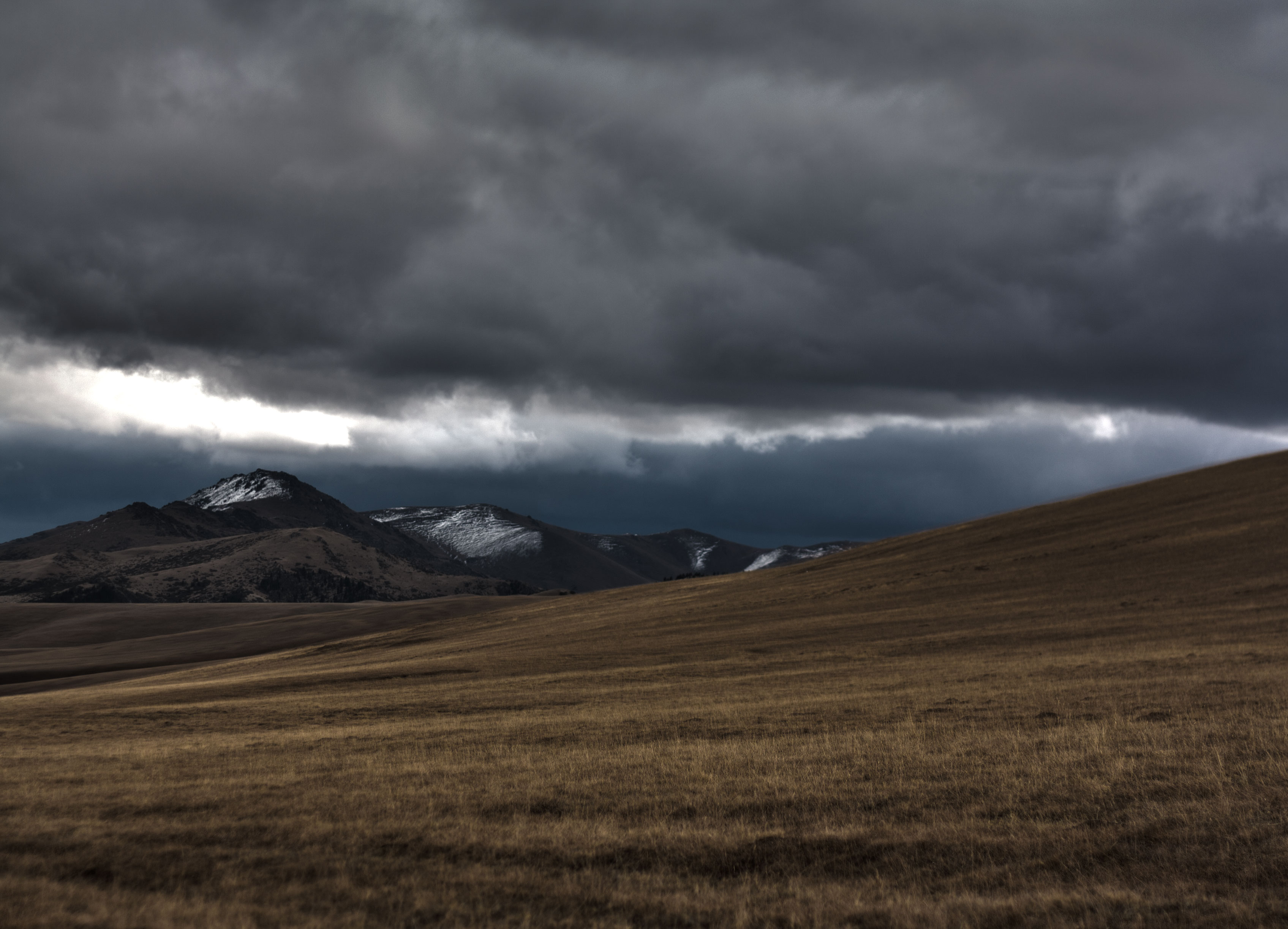 Дальше.. Если сделать наоборот - сдвинуть левую границу вправо - что будет? Будет преобладание диагонали. Склон. Правый загиб сверху - потеряется. Не буквально, конечно, но диагональ будет превалировать. Это легко проверить. Так что то, что есть - это некий компромисс, который близок к волне с тяготением к яме. Почему не сделать явную волну? (Допустим, реальный рельеф давал такую возможность) Но.. тогда потерялся бы акцент на ручье. Все же - это лощина, и совсем это отрицать в снимке - глупо. Дальше. Почему выбран именно такой баланс по высоте? Тут учтены и геометрия, и плотность. Динамического диапазона не хватило на облака (надеюсь, на оригинале все же лучше), но все же прорисовка есть. Несколько бОльшая доля неба означает акцент на виде в цлеом. Если выровнять доли - нужно будет уменьшить плотность земли - и небо потеряется. К тому же, есть позсознательное стремление к отдаленной аллюзии на Инь-Янь, но тут не следует перегибать палку, если только нет причины это явно подчеркивать.
