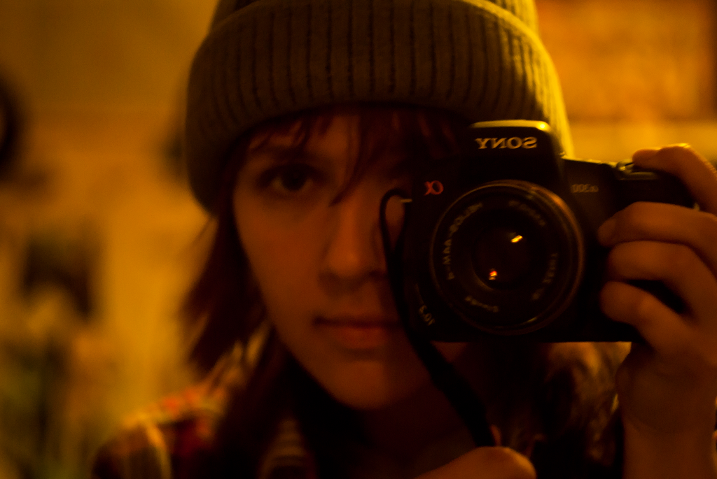 экспериментирую. уже подружила её с любимым «Гелиосом». вот, например, автопортрет.