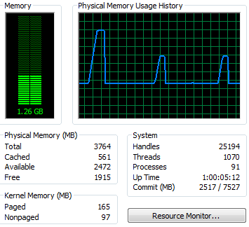 Программа до смешного простая: в цикле аллоцирует память по элементам массива длины m. Каждый элемент - упакованный в структуру массив длины L. Цель программы - продемонстрировать ученику работу с динамической памятью.. В качестве самого первого приближения использую конструкцию с malloc(). Код, как результат импровизации, вышел неким гибридом C и C++ (так сказать, C+-)) Для наглядности я открыл TaskManager на закладке Performance. При m=2000 и L=106 я ожидал, что используемая память вырастет на 2 ГБ. Вставил задержку в цикл аллокации памяти, чтоб был наклон графика памяти. Думаю - сейчас мой ученик все увидит своими глазами. Запускаю прогу..