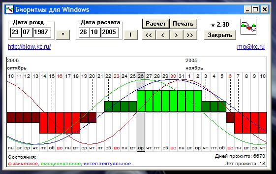 но все было бы круто если бы в программе я не додумал 2 вещи: (рассомтрим скрин) 1. так это биоритмы мои или windows ? 2. внизу - дней и лет прожито.. а где пункт сколкьо осталось? -------------------- Помогая друг другу, мы справимся с любыми трудностями!