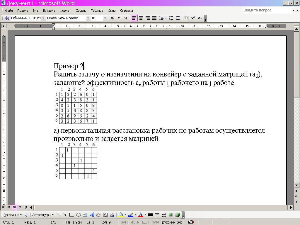 2. Задана матрица (aij) эффективности выполнения i-ым рабочим j-ой работы. Расставить рабочих по работам так, чтобы min(aij)--max(задача о назначении рабочих на конвейер). первоночальную расстановку рабочих по работам выполнить так: i рабочий назначается на i работу.