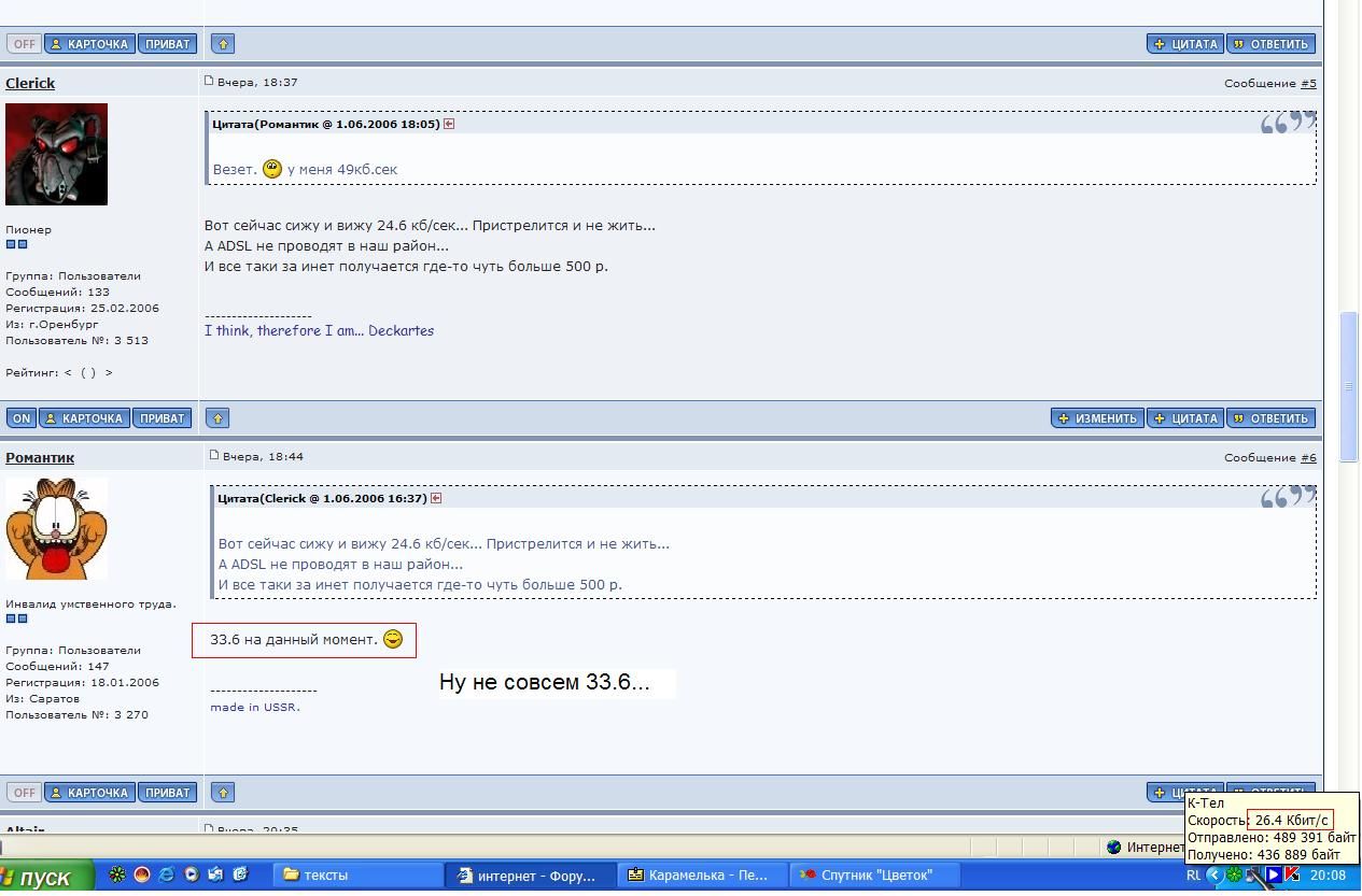 Вот сейчас сижу и вижу 24.6 кб/сек... Пристрелитс… 1.06.2006 20:44
