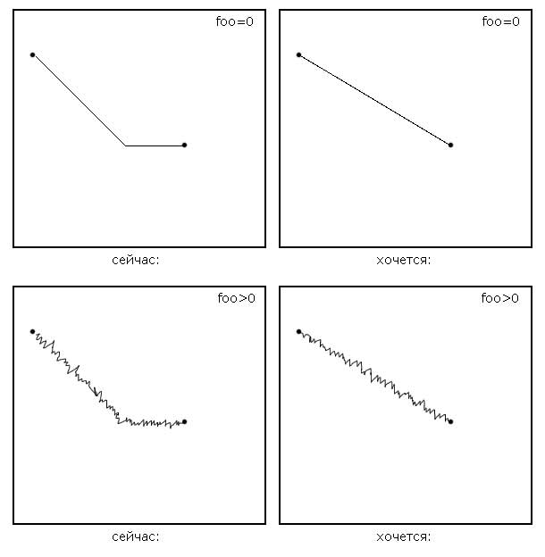 Например, при foo = 0 точка просто движется к цели без всяких заносов.