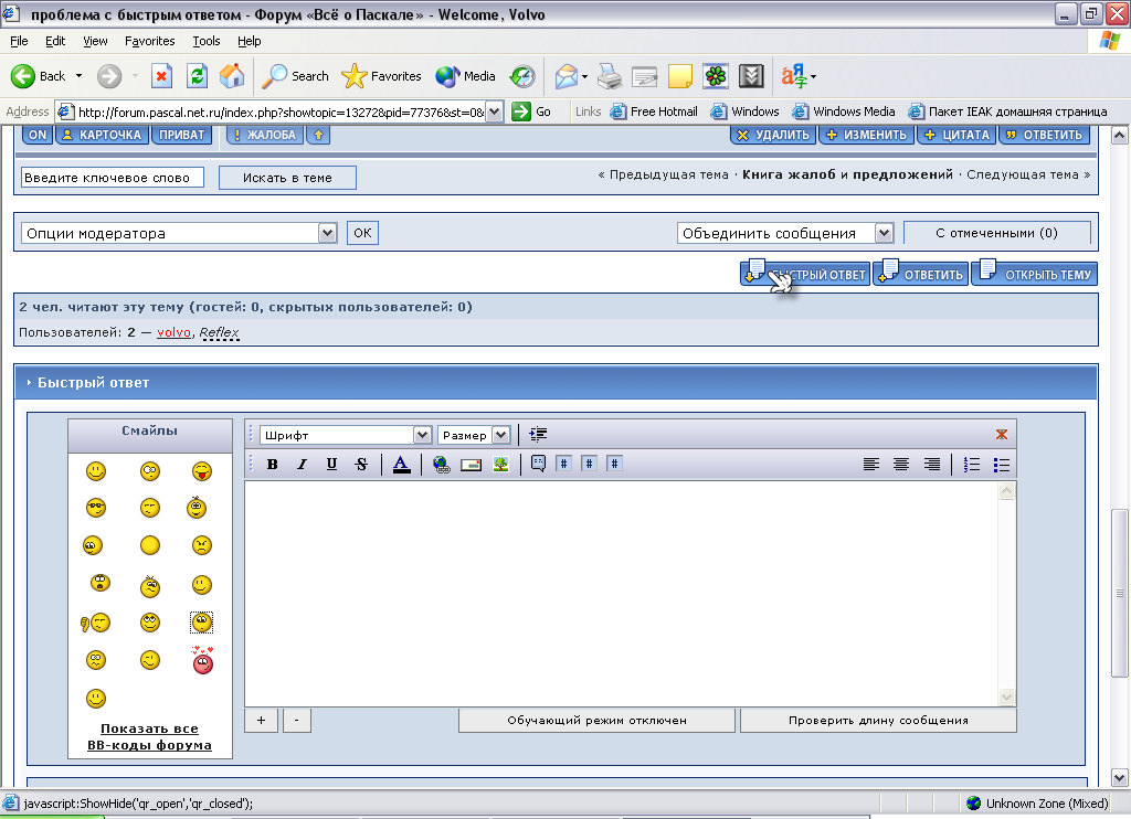 volvo Не понял... Опера 9.02 - нажимаю кнопку "Быст… 28.10.2006 2:25