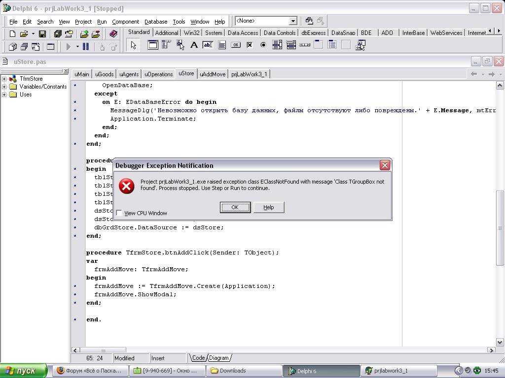 Очень странную ошибку мне Делфи выдает. При создании формы пишет что не найден класс TGroupBox, хотя все остальные формы создаются нормально с групбоксами ... StdCtrls подключен. С чего бы это ?!