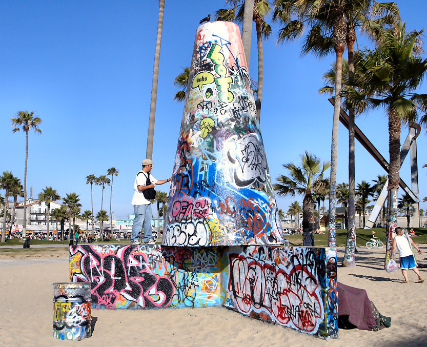 Вот одна фотография того, о чем я говорил: специальные сооружения для граффити. Это на Венис-Бич. Рядом есть еще большАя стена, но я почему-то ее не щелкнул (дело было летом).