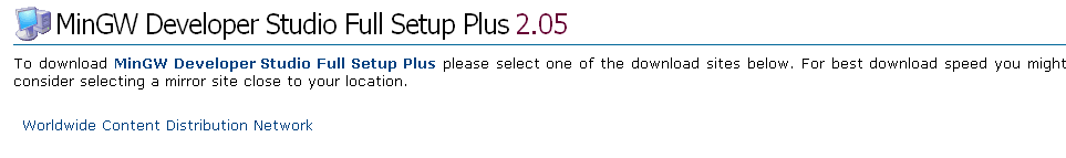 Цитата Сразу возникает вопрос - как ты оттуда умудрился скачать ??? Мне выдает какую-то левую ссылку, при переходе на которую браузер торжественно сообщает, что не может соединиться... После перехода по ссылке на сайте программы, тебя переносит сюда: жмешь на кнопочку Download now и попадаешь на такую страницу осталось только клацнуть по ссылке Worldwide Content Distribution Network (переход осуществляется с помощью javascript, не забудь включить его). Появляется окно закачки. Но, сразу ты сохраняешь не сам дистрибутив среды разработки, а прогу, которая уже закачивает MinGW. Если не выходит скачать прогу-закачку, могу выложить ее на форум или даже закачать саму среду в другое место. -------------------- Лао-Цзы :