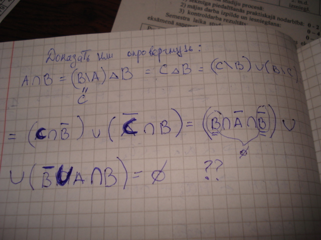 1. У тебя в тексте стоит значок объединения, а на картинке - пересечение. Определись как-нибудь.. Для пересечения это выглядит верным.. На картинке у тебя ошибка: самая последняя скобка не равна пустому множеству.