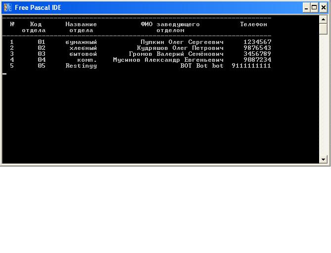 Имеется 2 файла справочника и один файлик основной. Необходимо сформировать ведомости. Первая ведомость формируется как надо, тоесть как мне надо ). А вот вторая в последнем столбике Количество Струдников не прописывает их количество. Код написан, вроде должно работать, а не тут-то было. Вот в этом файле Прикрепленный файл  Vedomosti.pas ( 12.69 килобайт ) Кол-во скачиваний: 780