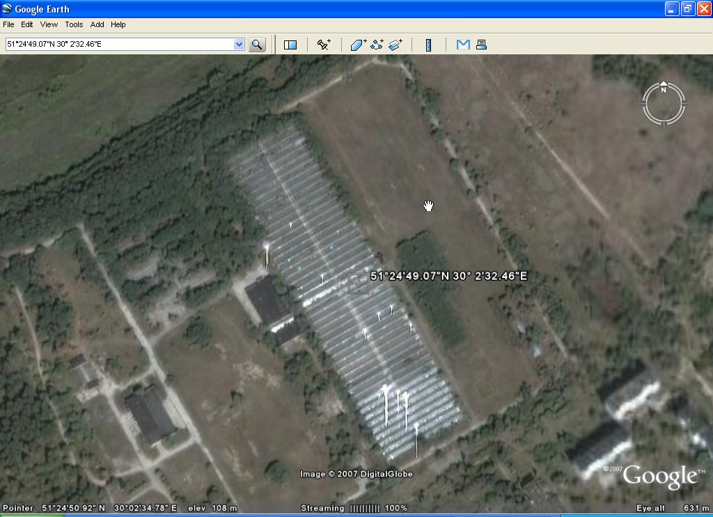 Дали мне для Google Earth эти координаты 51°24'49.07"N 30° 2'32.46"E (это Припять, недалеко от Чернобыля), а там какие-то непонятные свечения