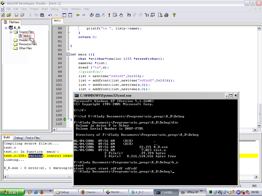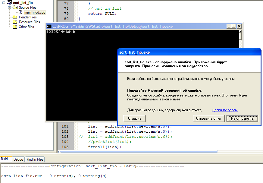 Вот именно в том, что "у тебя СРР" и есть проблема. Программа-то написана на Plain C !!! Поменяй расширение на С и запусти... Как видишь, у меня отработало без сбоев smile.gif
