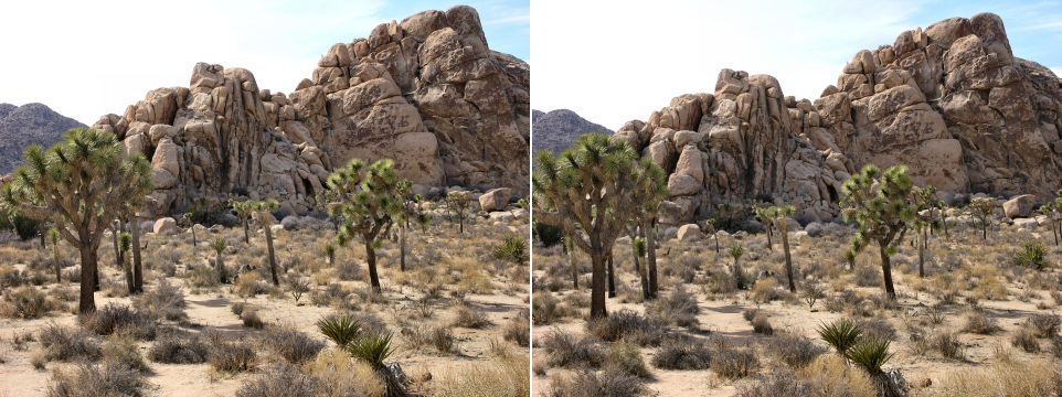 Несколько слов о том, как я делаю эти пары. Я выбираю подходящий сюжет, после чего встаю к нему лицом на две ноги, расставленные на ширину плеч. Затем переношу тяжесть тела на левую ногу и делаю снимок. После этого передвигаю тело так, чтобы тяжесть падала на правую ногу и делаю еще один снимок. При этом нужно следить, чтобы границы кадров приблизительно совпадали (особенно по заднему плану). Следует избегать сдвижения камеры по вертикали, а также ее поворотов вокруг оси съемки (хотя повороты можно убрать в фотошопе). Далее, если у вас автоэкспозиция - следите, чтоб она была одинаковой при съемке этих двух кадров (либо переключитесь на ручник). Фокус тоже желательно наводить по одному предмету, а не по разным (либо тоже использовать ручной). База (расстояние, на которое вы смещаетесь) играет роль, но не критична. В целом так: желательно, чтоб она была чуть больше, чем реальное расстояние между глазами (для усиления эффекта) - раза в два еще нормально. Если вы снимаете с зумом, то нужно увеличивать базу пропорционально ему. Ну и конечно, так нельзя снимать движущиеся предметы - для этого нужно использовать две синхронизированные камеры. Даже облака могут сыграть злую шутку..