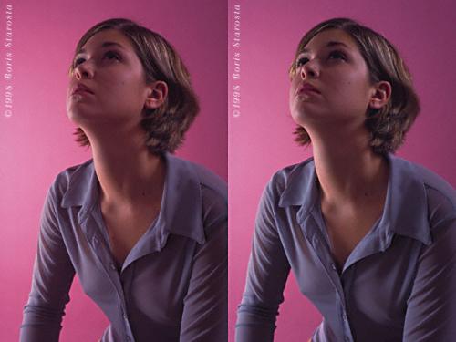 Назовем разведение глаз к ушам прямым (П) способом, или Direct (D), а сведение к носу - обратным (О), Reversed (R ). То, как именно вы сдвигаете изображение, важно запомнить для себя, так как способ будет влиять на просмотр. Дело в том, что стереопары, просматриваемые без специальных устройств, простым движением глаз, должны быть расположены специальным образом для каждого способа просмотра. Если используется прямой способ (разведение глаз к ушам - кстати, не путать с разводкой на деньги! хотя, что-то похожее есть..