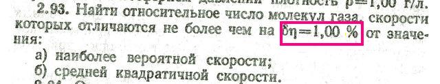 Натолкните на верное решение! А разве я не ответил?.. Берешь функцию распределения по скоростям. Смотришь на ее максимум - он достигается при наиболее вероятном значении (допустим, Vo). Потом берешь интеграл этой функции от Vo*0.95 до Vo*1.05 - вот и все.. Причем, интегрировать на самом деле не обязательно, нужно просто домножить значение функции на 0.01*Vo - да и все (то есть заменить интеграл прямоугольничком). Для среднеквадратичной скорости поступить аналогично. -------------------- я - ветер, я северный холодный ветер