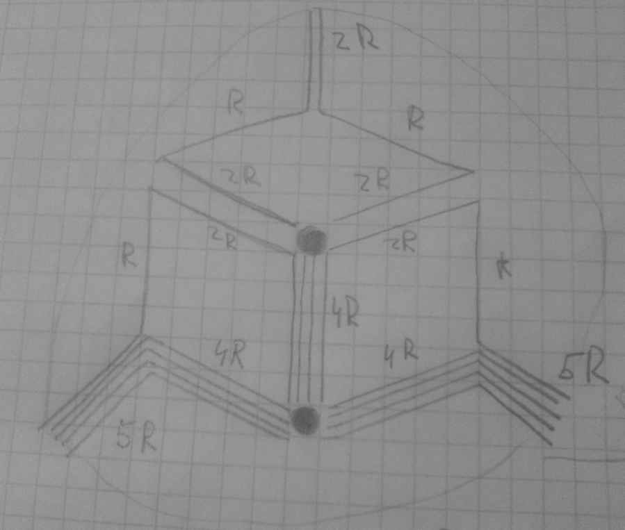 У меня похожая задача До того как наткнулся на ваше сообщение решил её следующим образом Тут вопрос в следующем: 1) Правильно ли? 2) И как обосновать, то что в точках, которые я указал стрелками, мы можем соединить схему? (т.к. я руководствовался соображениями симметрии )