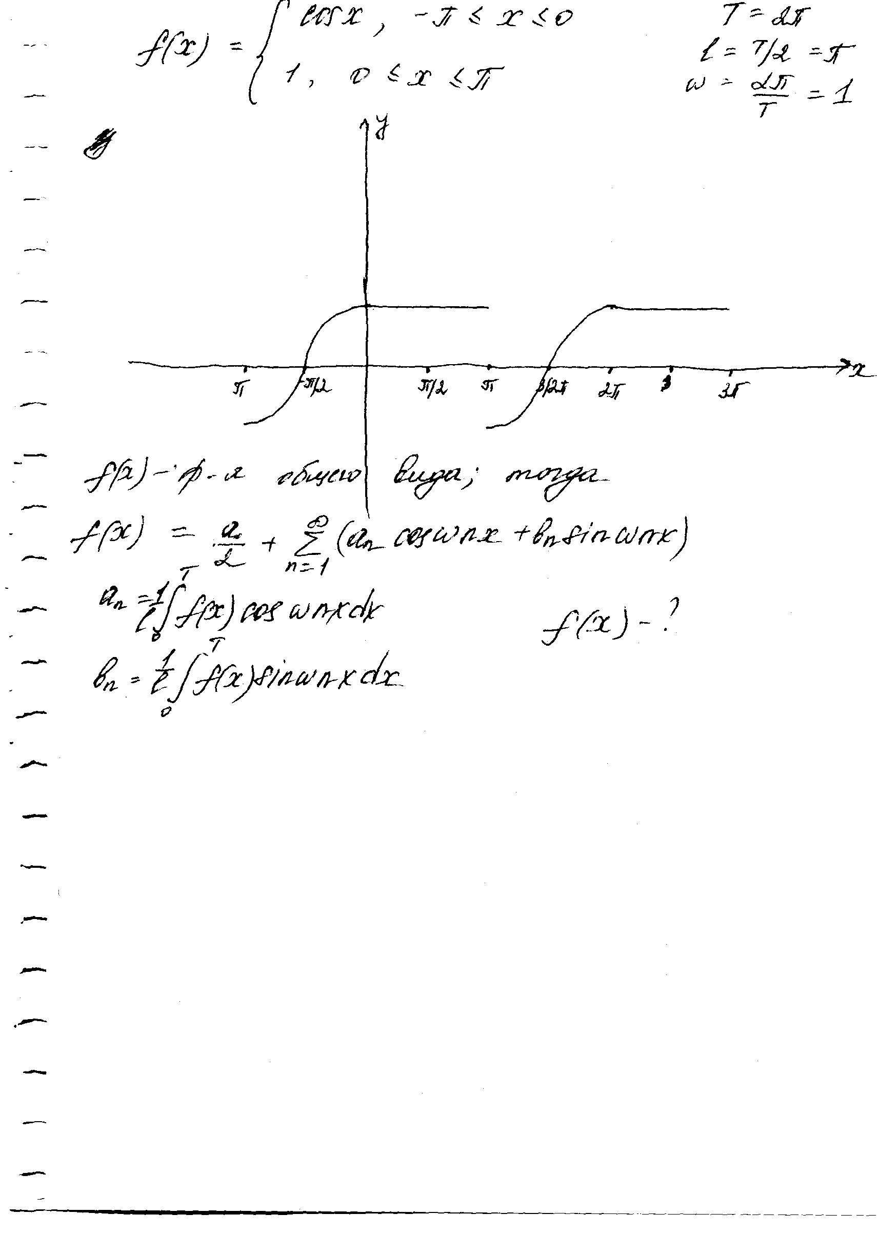Теперь про функцию. Если ты раскладываешь ЭТУ функцию (которая нарисована), то именно ЕЕ и нужно использовать в выражениях для ai и bi.