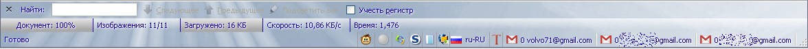 После недавнего обновления отвалился GMail Notifier. Пишет, что не может подключиться к gmail.com, ни автоматически, ни вручную. Хотя зайти на страничку получается прекрасно. Пока заменил это расширение на GMail Manager, тот подключается прекрасно. Хотя не обошлось и без ложки дегтя - Manager при работе с несколькими ящиками отображает все значки в ряд в статусбаре, причем возле каждого пишет не только количество писем, но и полный почтовый адрес. А у меня на GMail-е 3 ящика. Получается длинно, и при навигации статусбар все время корежит - то появится progressbar, то исчезнет. Решилось установкой еще одного расширения: Extended StatusBar (оно "разделяет" статусную строку на 2, и для прогресс-бара места хватает). Теперь выглядит вот так: