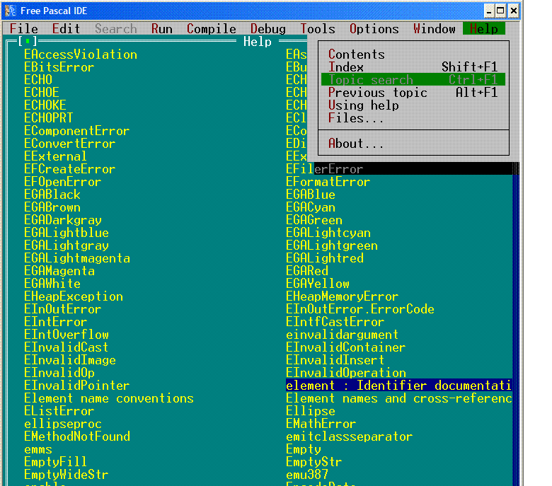 я тут скачала free pascal там написанно было скачать отдельно хелп и добавить в Хелп/files fpctoc.html. Я скачала, добавила. В итоге вопервых если я навожу на else курсор и жму Ф1 не вылетает help, во вторых в хелп индех пишу else и ничего не находит, какой то странный хелп...