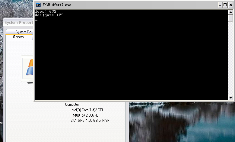 Сделал замер скорости. Огорчился. Решил смеха ради добавить одну паразитную команду (она тут закомментирована). Получил резкое ускорение - то есть теперь данные стали выводиться в одно и то же место в памяти. Видимо система запомнила, куда в последний раз обращалась программа и не стала проверять обращение на корректность лишний раз. Как на самом деле обрабатываются обращения к памяти в винде? И можно ли использовать эту информацию для ускорения? Кстати, почему пара deс; jnz работает намного быстрее, чем loop, который специально предназначен для циклов?